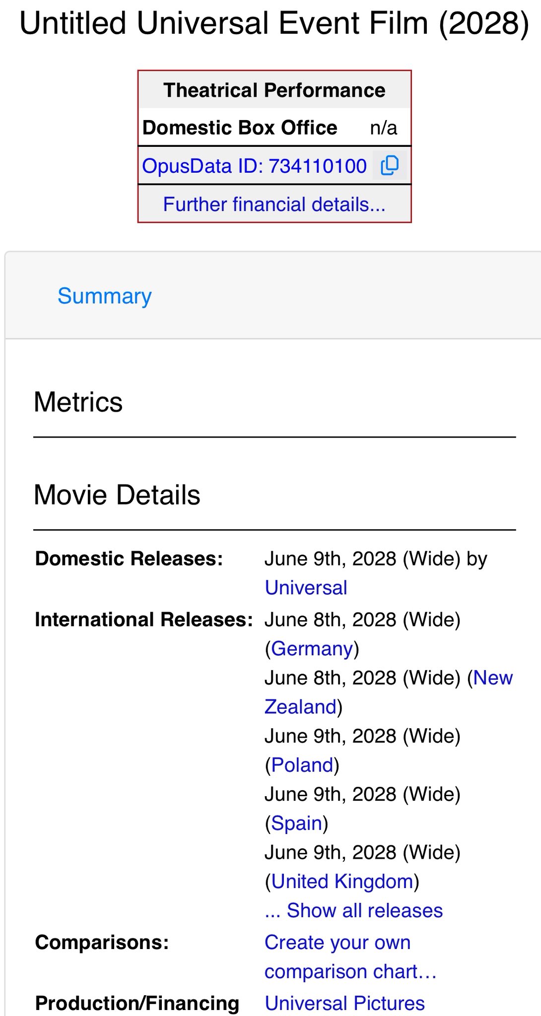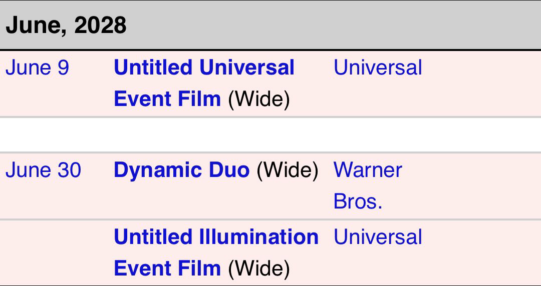 - September 10th, 2025: Filings by Universal reveal an event film slated for June, 2028 release date – potentially the next film's release date.